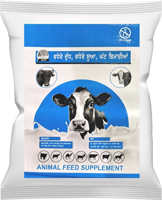 • ਸੂਣ ਤੋਂ 2 ਮਹੀਨੇ ਪਹਿਲਾਂ 200 ਗ੍ਰਾਮ ਪ੍ਰਤੀ ਪਸ਼ੂ.ਪ੍ਰਤੀ ਦਿਨ ਲੇਵੇ ਦੇ ਸੰਪਰੂਨ ਵਿਕਾਸ ਅਤੇ ਬਿਮਾਰੀਆਂ ਤੋਂ ਬਚਾਅ ਦਾ ਪੱਕਾ ਹੱਲ
